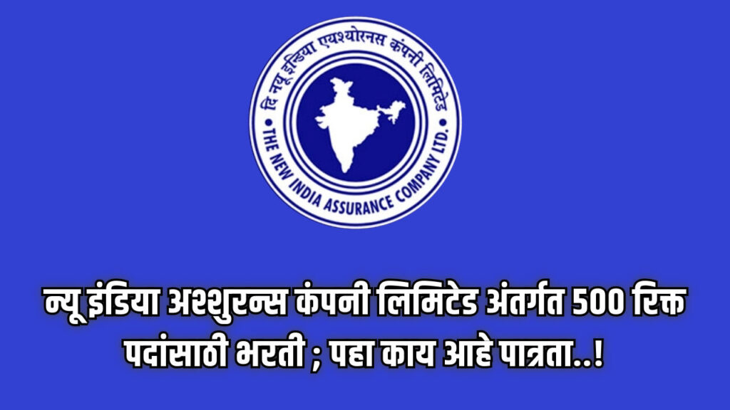 भरतीचे नाव : न्यू इंडिया इन्शुरन्स कंपनी लिमिटेड अंतर्गत भरती 2024